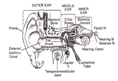 The infections in the middle ear are caused by congestion of the EUSTACHIAN TUBE. Often a middle ear infection will be accompanied by a foul smelling discharge. If allowed to persist the hearing bones or the mastoid process (the bony projection behind the ear) may be infected. Bone, Flesh and Cartilage formula as a fomentation and the oil of garlic with the B and B tincture may be used. It is possible to have a middle ear infection for a long time with no symptoms of earache.