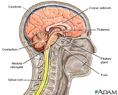 The encephalon. That part of the central nervous system contained in the cranial cavity, consisting of the cerebrum, cerebellum, pons and medulla oblongata.