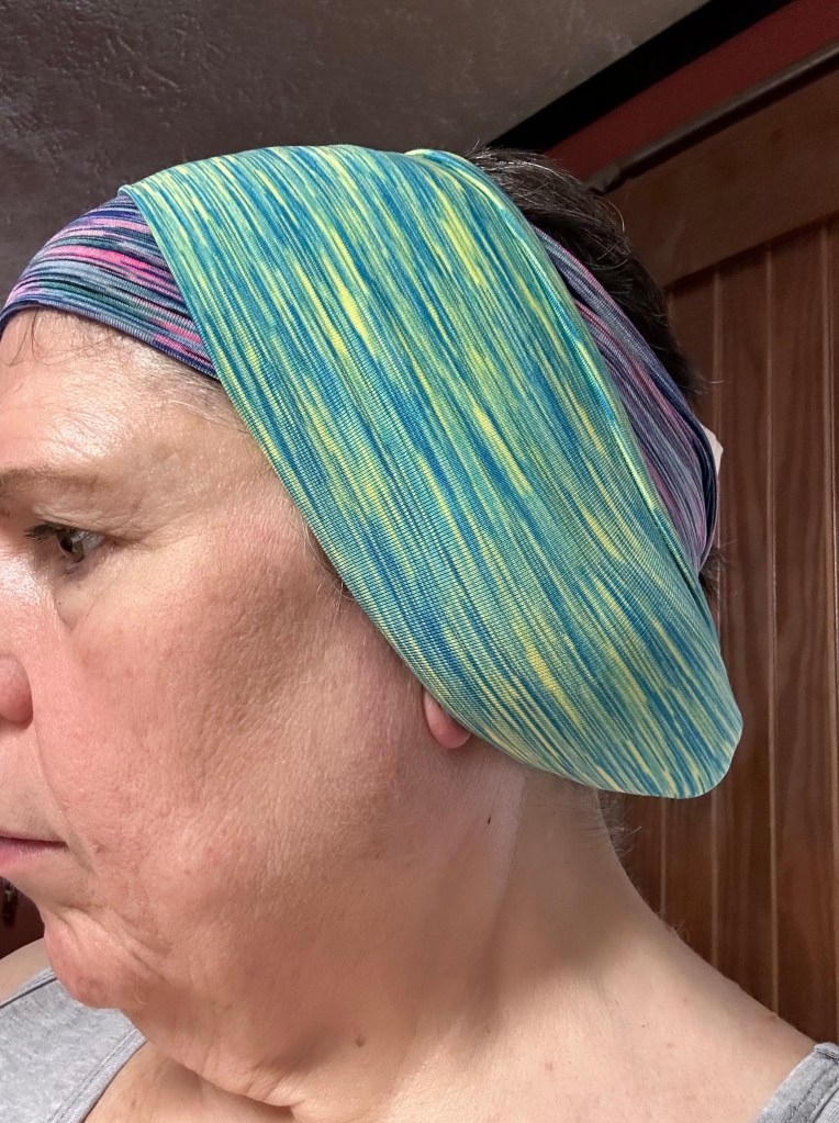The Poultices is held in place with two wide sweat bands.